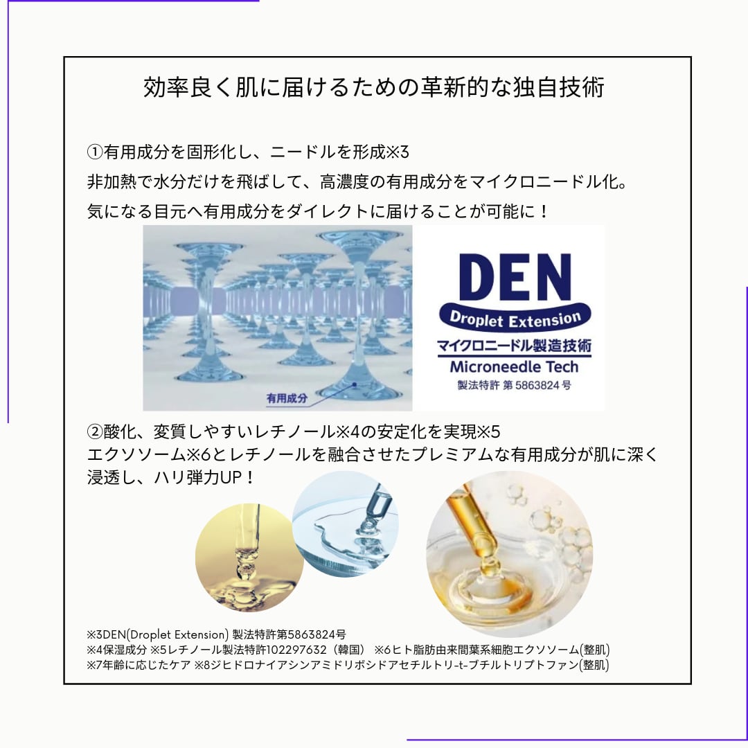酸化しやすいレチノールを、マイクロニードル内に留め安定化*²させることにより肌に効 率よく届けることができます(※⾓質層まで)。